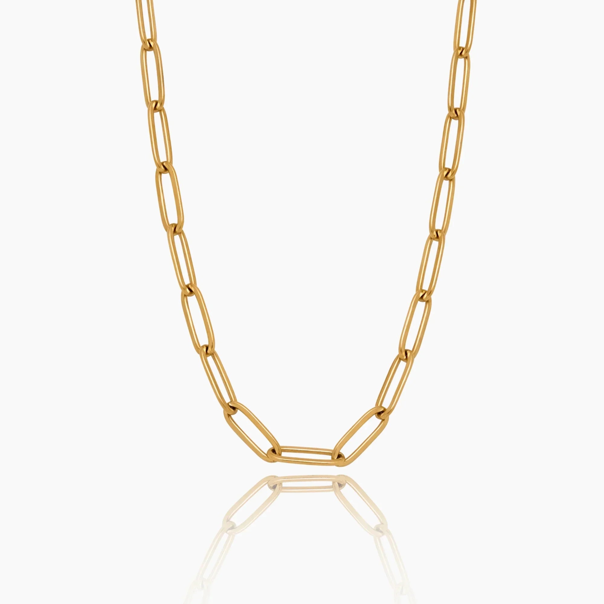Inspiriert von moderner Architektur steht diese Halskette für klare Linien und stille Stärke. Die länglichen Glieder schaffen einen bewussten, markanten Rhythmus – kraftvoll, aber nie laut. Sie verleiht weichen Silhouetten Struktur und dem Alltag eine subtile Kante. Veredelt mit 18K Goldbeschichtung und auf Langlebigkeit ausgelegt – ein Schmuckstück, das für sich spricht, ganz ohne Layering.