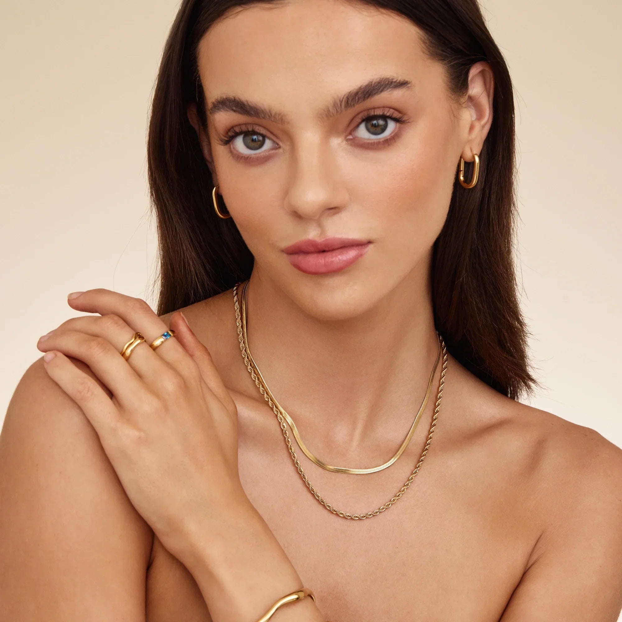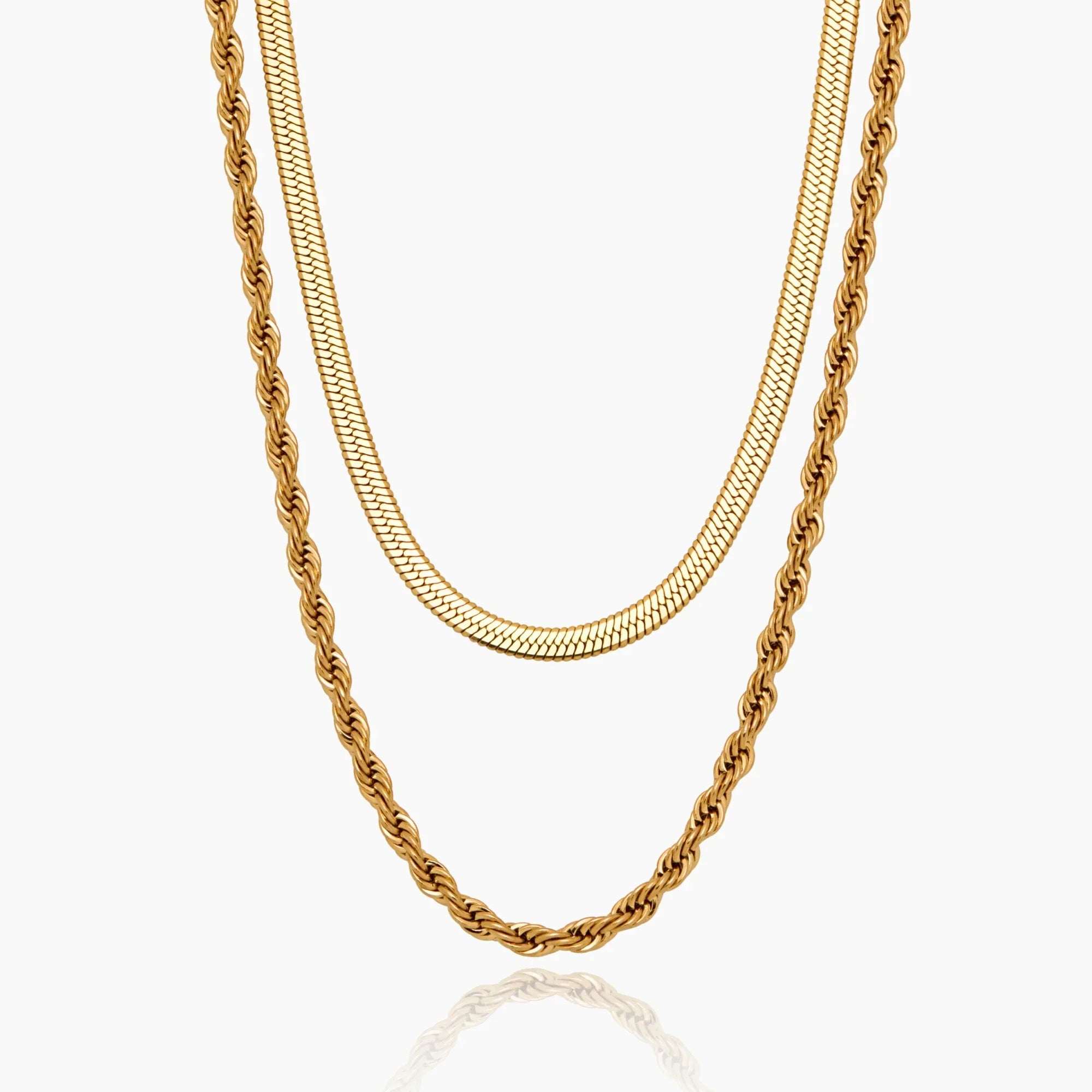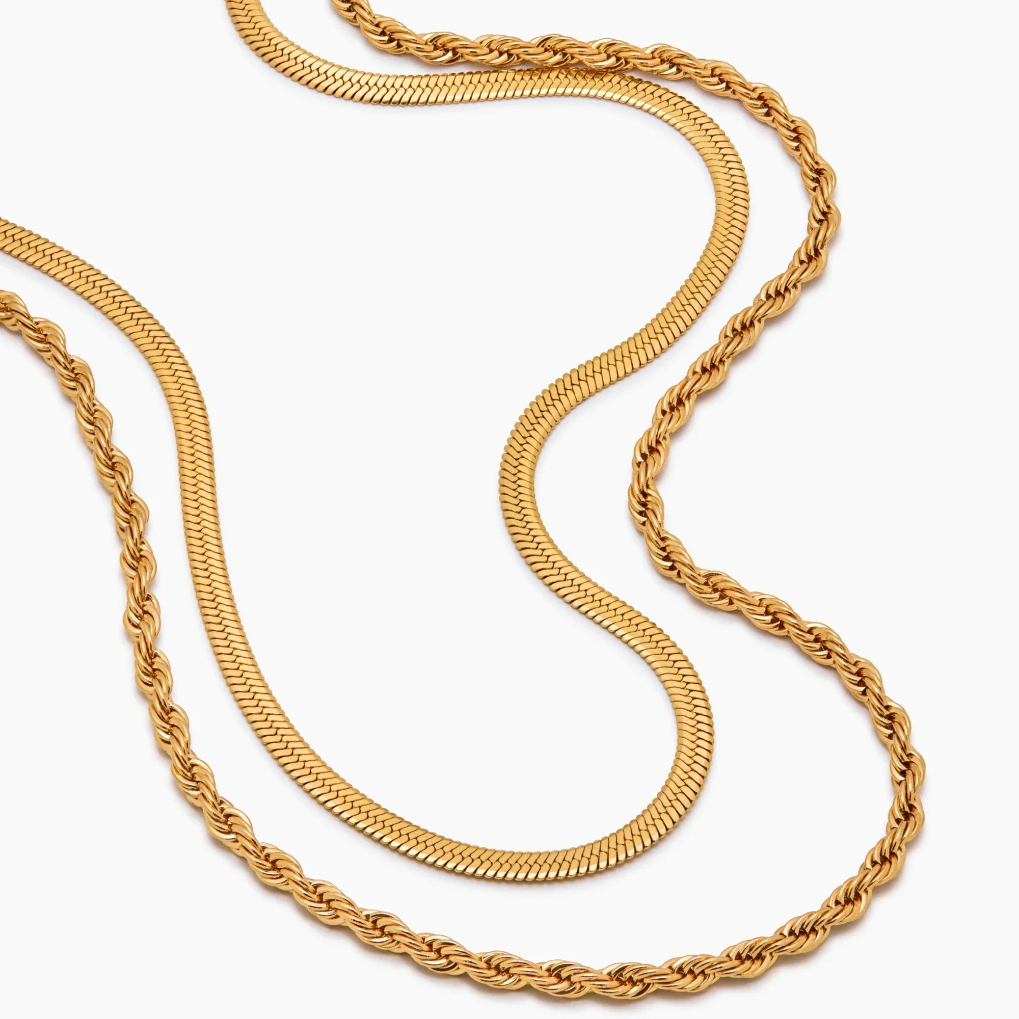 Herringbone & Rope Chain Layered Halskette