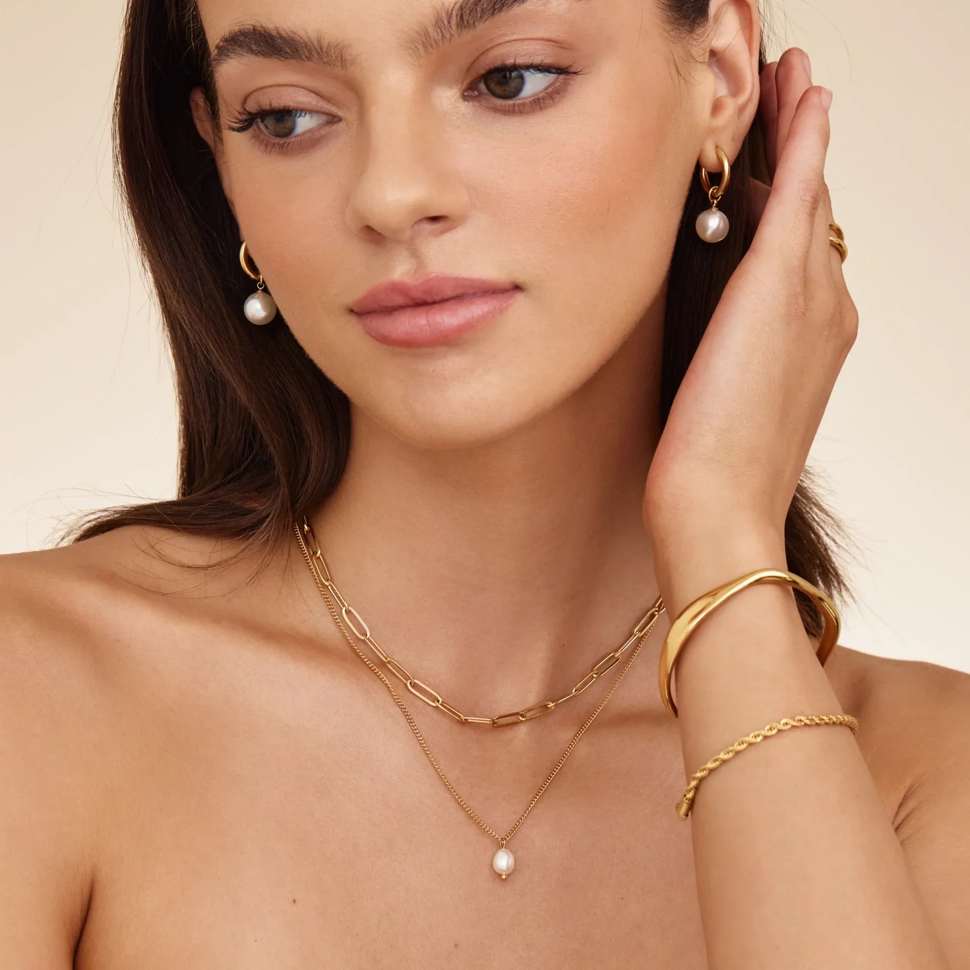 Paperclip & Perlen Drop Layered Halskette