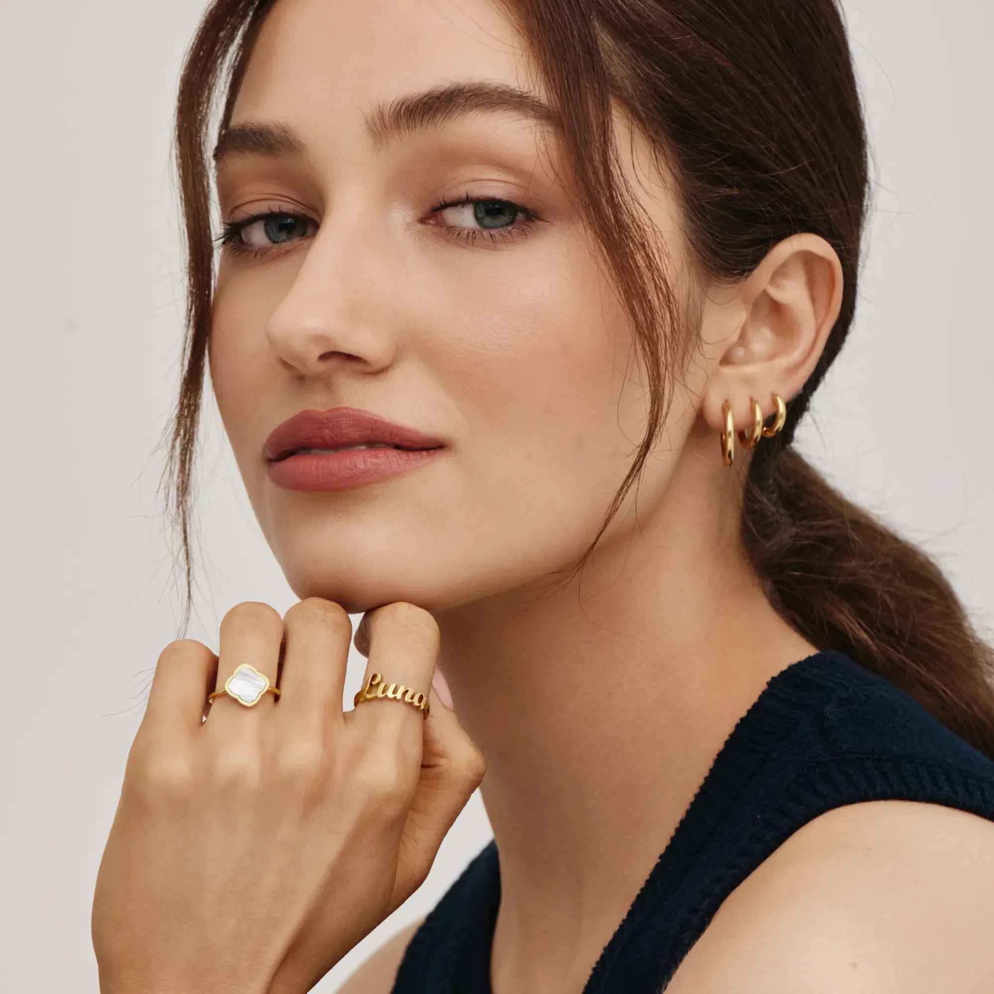 Ein Name, verwandelt in etwas, das Sie immer bei sich tragen können. Sanfte Linien und ein schlankes Band formen ein Schmuckstück, das sich persönlich und zeitlos anfühlt. Ein Ring, der ganz selbstverständlich Teil Ihres Alltags wird. Jeder Blick darauf erinnert leise an die Liebe und an einen besonderen Abschnitt, den Sie nie vergessen möchten.